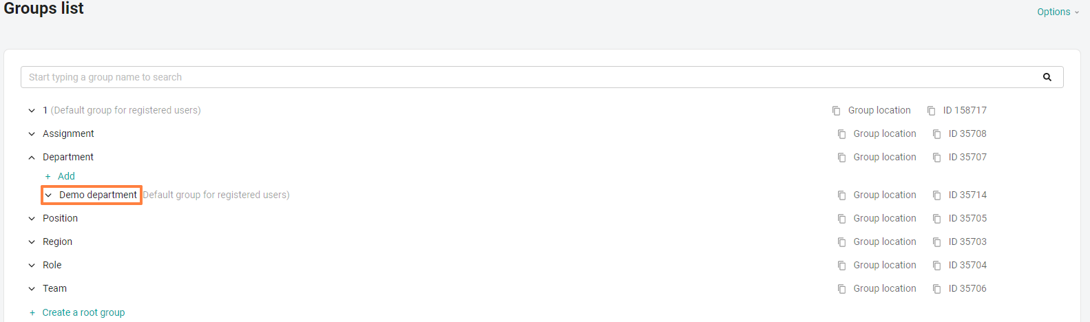 If these groups are set up in the system, then you can copy the path by clicking on the "Path to group" button.
