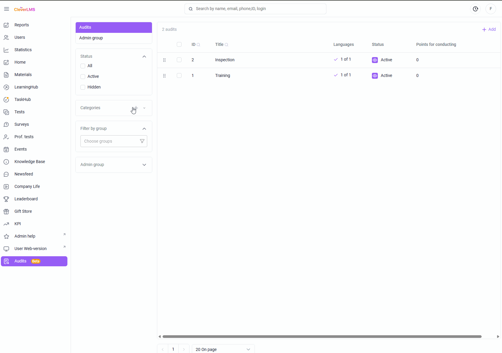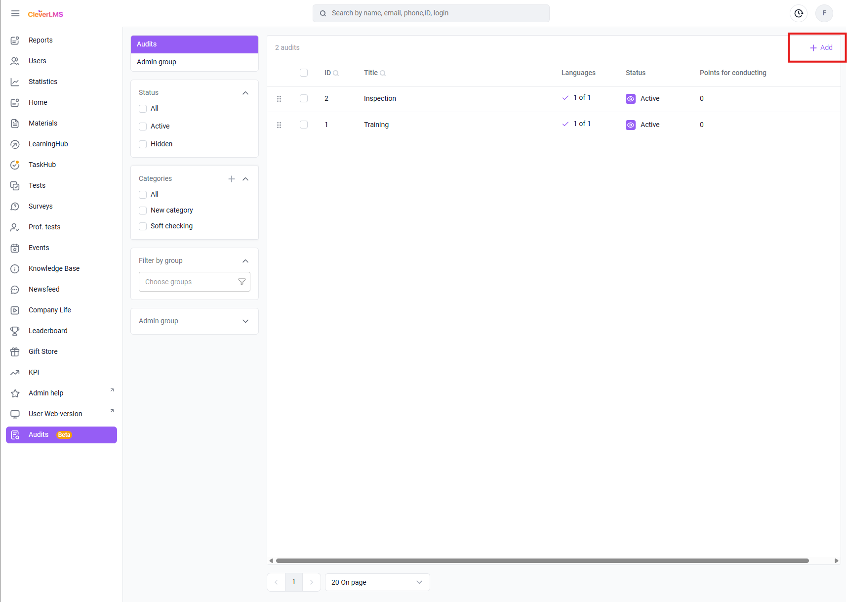 Before creating audits , you need to create categories in which they will be placed. To do this: