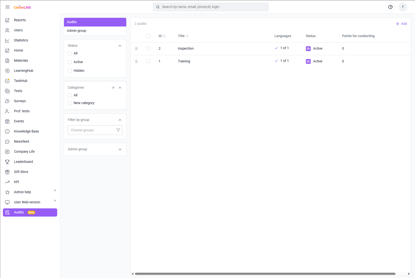 Assigning group and individual access to audits using bulk actions, as well as changing the order of Audits in the section list, will become available in future platform updates.