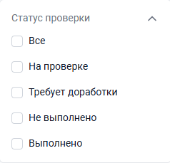По статусу проверки (доступно для просмотра статистики по ответам задания):