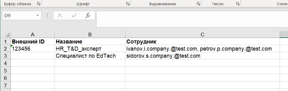 - Сотрудник - указывается почта сотрудника. Если их несколько - почты перечисляются через запятую. Если одна почта будет указана у нескольких сотрудников, то со штатной единицей свяжутся все сотрудники, имеющие эту почту.