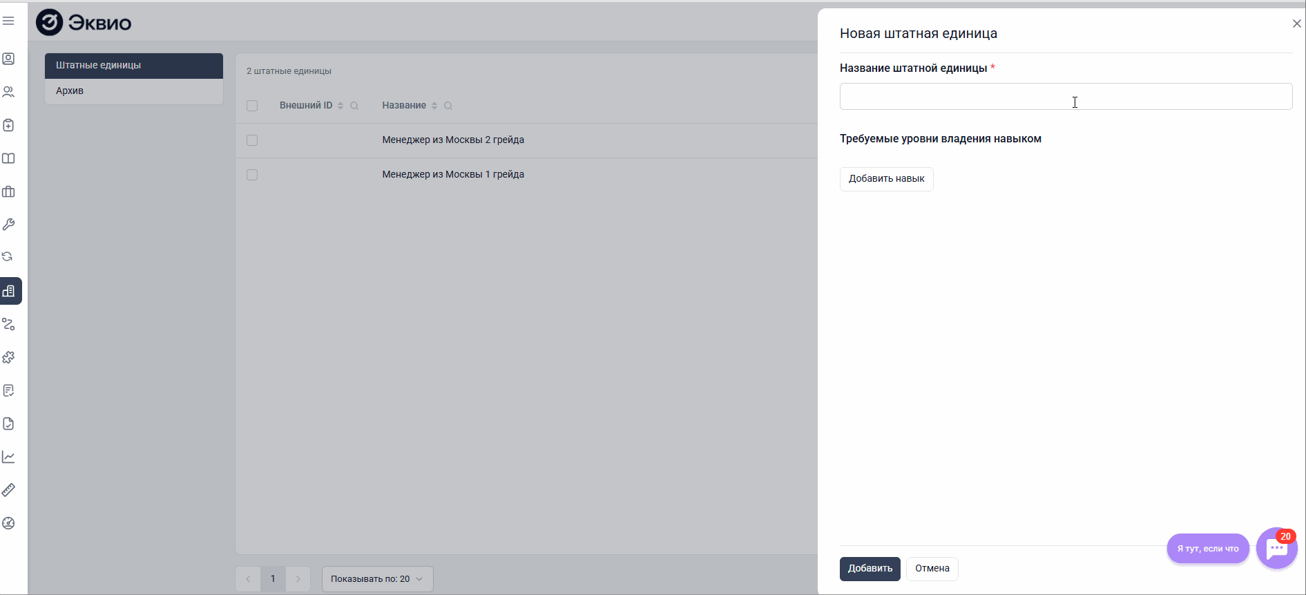 - Завершите создание Штатной единицы, нажав на кнопку "Добавить".