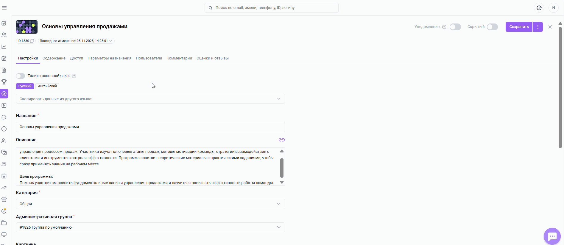 Теперь администратор может решать: заполнять информацию только на основном языке или полностью переводить контент на все доступные в компании языки.